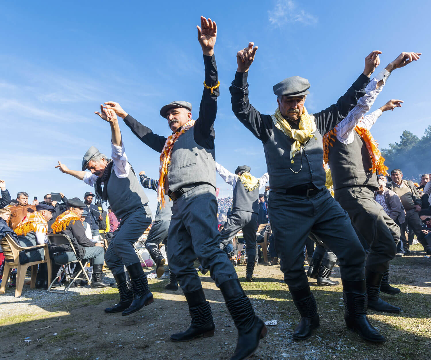 The ancient grape harvest celebrated in Dionysian festivals when the laborers pressed the grapes with their knees is still alive when the provincial Turks dance with their knees touching on the ground in any wedding party.