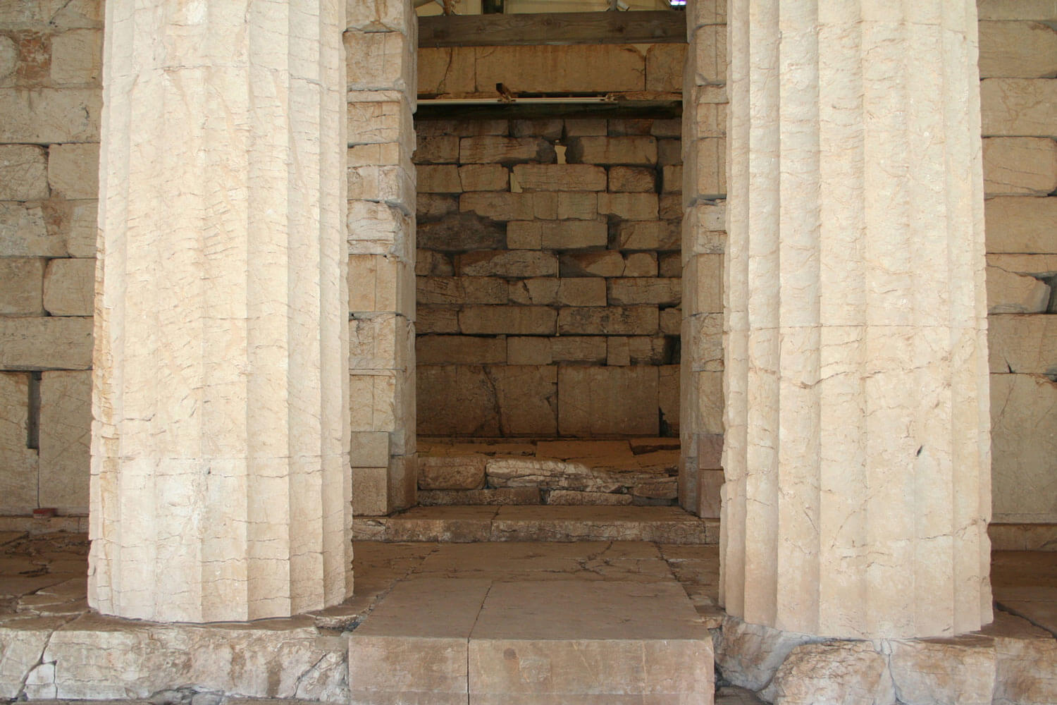 In this photo is the Eastern door so located in relation to the cult statue of Apollo to catch the first rays of the morning sun, no doubt lined exactly on festival days.